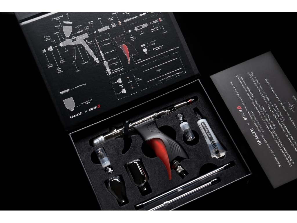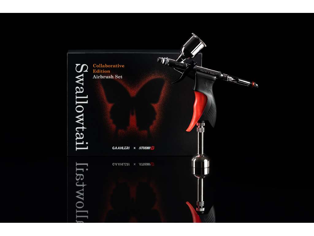 Gaahleri GHAC-Swallowtail Studio G je výsledkem spolupráce mezi Gaahlerim a slavným influencerem Studio G, vyznačuje se jeho charakteristickou barvou na rukojeti a exkluzivním, na míru navrženým obalem. Tento airbrush, navržený pro přesnost a všestrannost, uspokojuje širokou škálu uměleckých potřeb, od detailního výtvarného umění po širší aplikace.