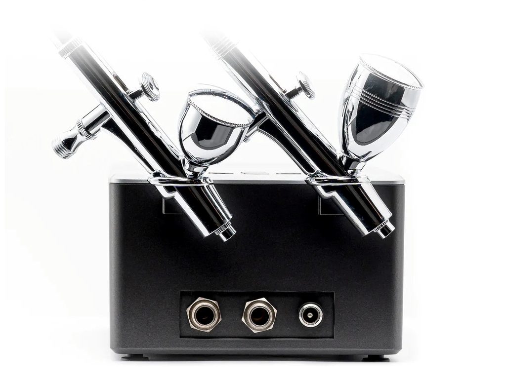 K mini kompresoru můžete připojit až 2 airbrush pistole, což vám umožní přepínat a řešit různé potřeby podle libosti.