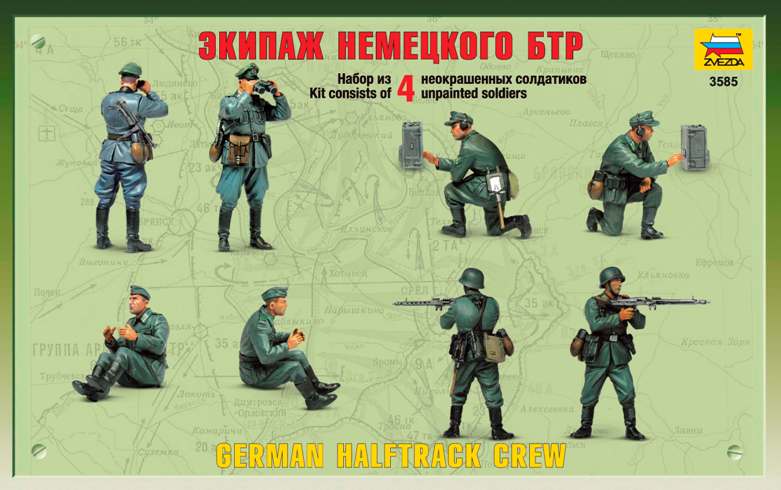 Tato posádka polopásového vozidla je určena k použití s německým obrněným transportním vozem Hanomag (Zvezda č. 3572), který se používal za druhé světové války.
