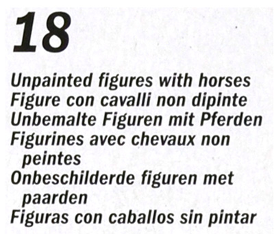 Sada figurek doplňujících modely. Měřítko: 1:72. Obtížnost: 1.Barevné schéma (Doporučené barvy Italeri): - 4768AP, 4671AP, 4681AP, 4674AP, 4746AP, 4606AP, 4720AP, 4603AP, 4769APDetaily modelu: Měřítko: 1:35 Obsah: 18 figurek na koních Obtížnost: 1 Upozornění: Nebezpečí udušení! Výrobek obsahuje malé části. NEVHODNÉ PRO DĚTI DO 3 LET!