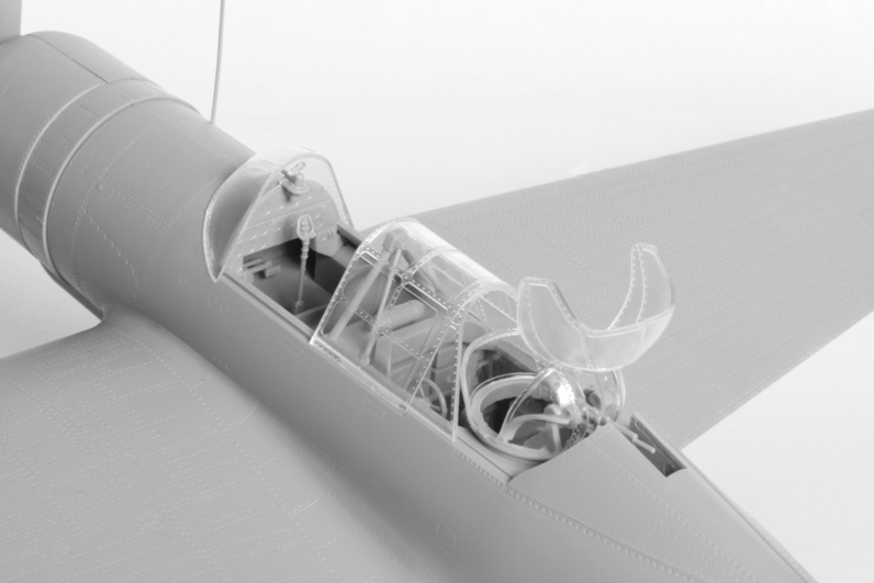 Model letadla ke slepení. Velikost: 1:48; 21,8 cm. Balení obsahuje: 157 dílků ke slepení.