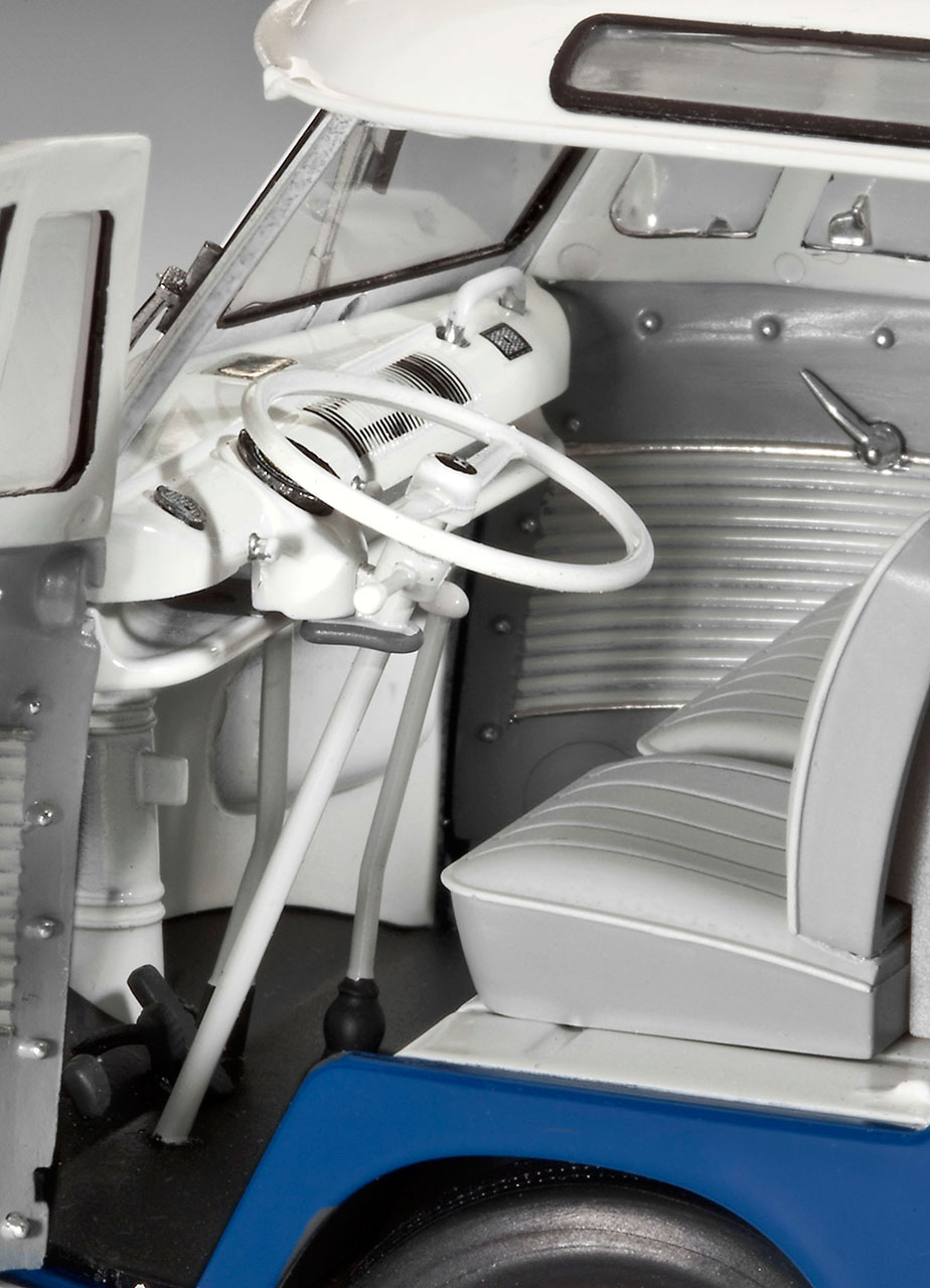- Detailní vybavení interiéru s palubní deskou a lavicovými sedadly